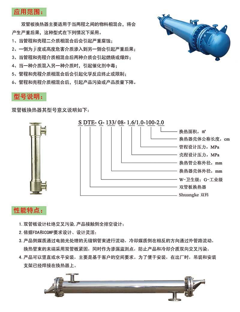 無菌級(jí)雙管板換熱器產(chǎn)品特點(diǎn):